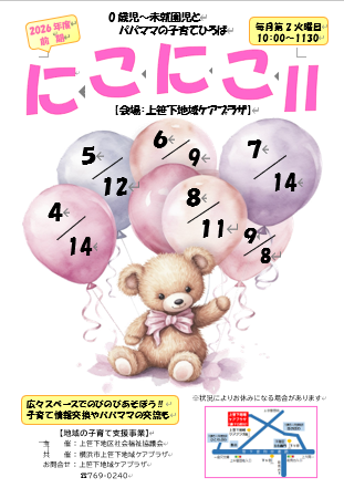 | 問合せ | 上笹下地域ケアプラザ 045-769-0240 |