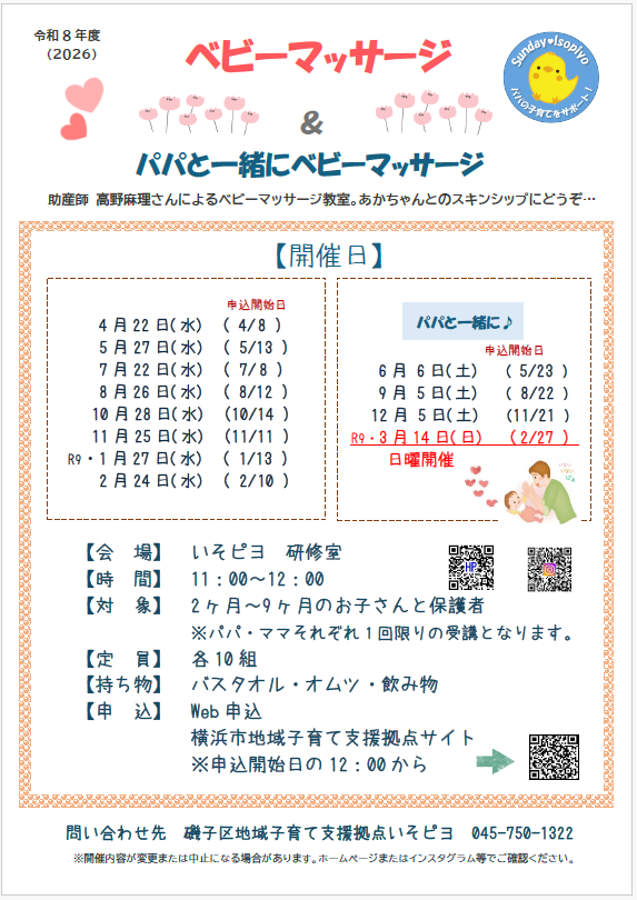 | 問合せ | 磯子区地域子育て支援拠点いそピヨ 045-750-1322 |