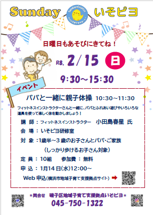 | 問合せ | 磯子区地域子育て支援拠点いそピヨ 045-750-1322 |