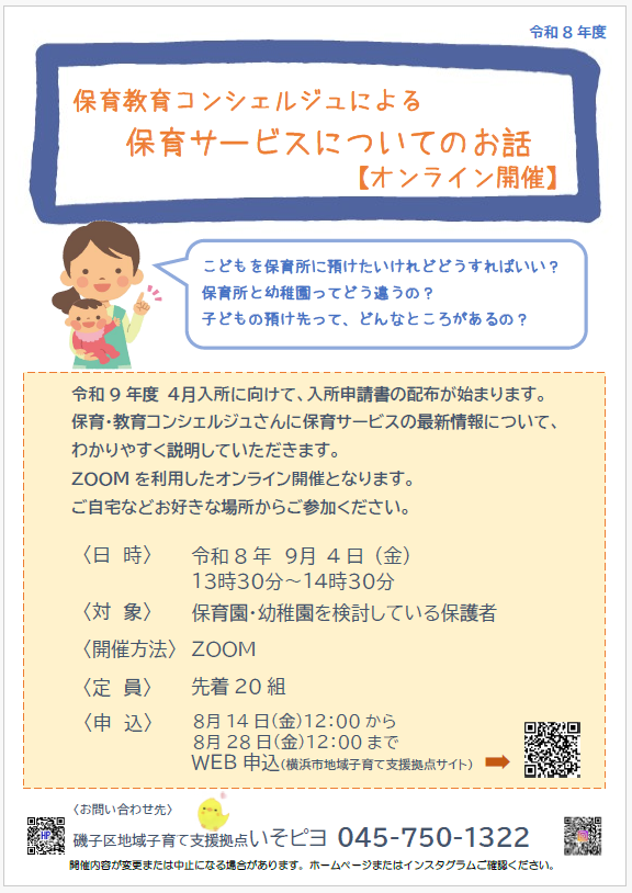 | 問合せ | 磯子区地域子育て支援拠点いそピヨ 045-750-1322 |