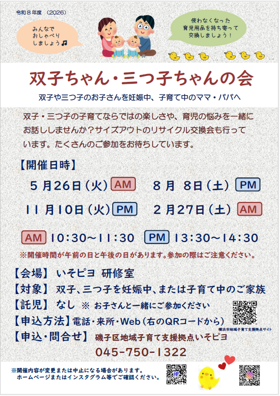 | 問合せ | 磯子区地域子育て支援拠点いそピヨ 045-750-1322 |