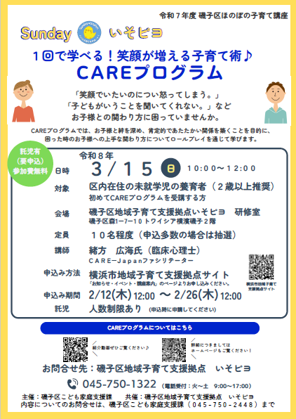 磯子区ほのぼの子育て講座 1回で学べる!笑顔が増える子育て術♪C A R Eプログラム