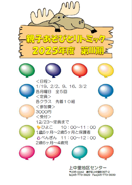親子遊びとリトミック第Ⅲ期(上中里地区センター)