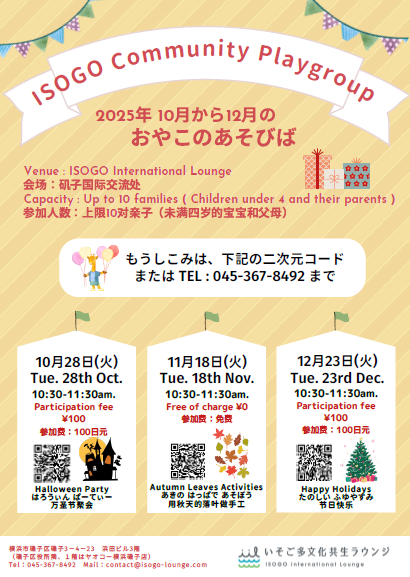 ISOGO Community Playgroup is a place for parents and children with roots in many different countries to play together. We tell stories about seasonal events, do crafts, play songs, and read stories to children.