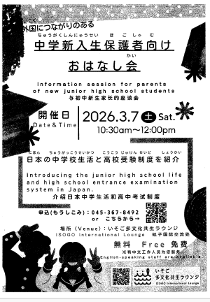 がいこくにつながる「ちゅうがくしんにゅうせいほごしゃむけおはなしかい」をかいさいします。